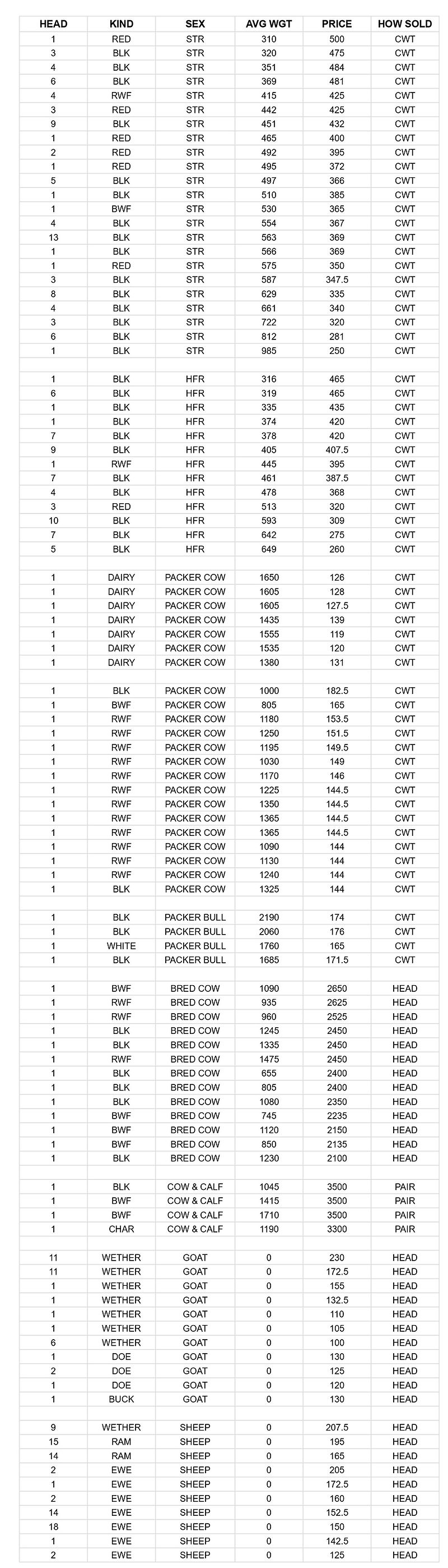 When livestock are sold by the head, you’re shown a flat price per animal and it reflects what the animal sold for per head, the the livestock are not sold on a per weight basis.